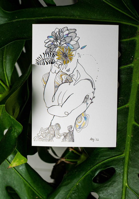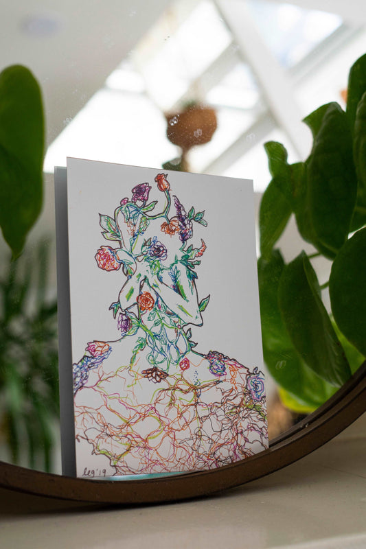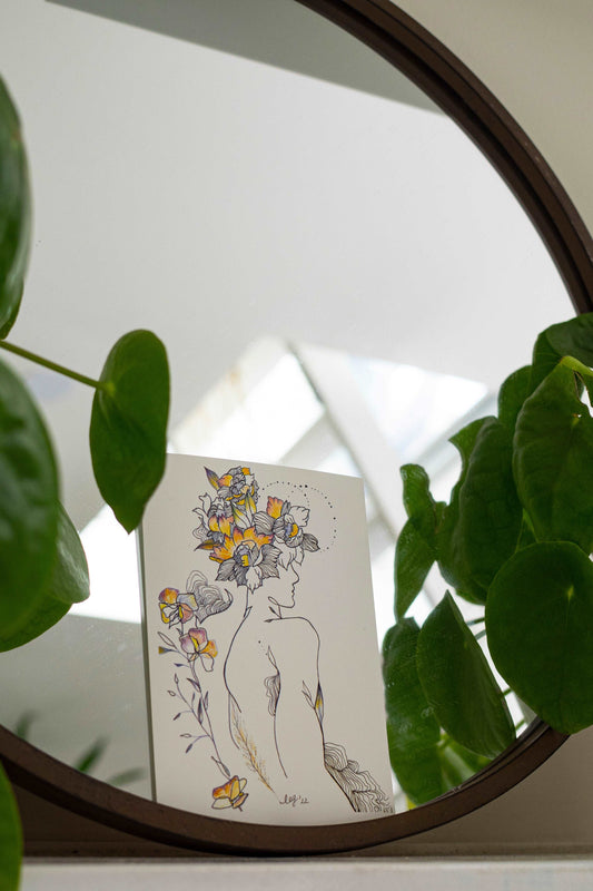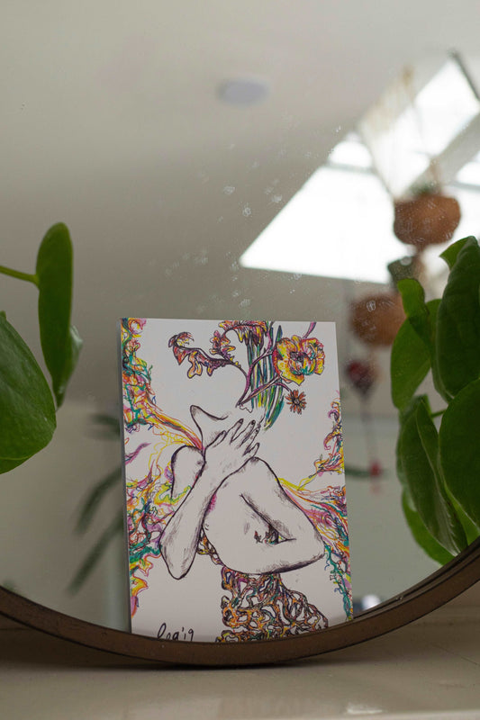 I made these postcards when I was heartbroken for the first time. Making these cards helped me get through the stages of grief with more self-compassion. Creating art quite literally transmuted my pain into something beautiful, that I had more understanding for.