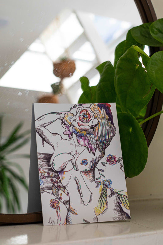 A6 Postcards on thick durable paper hand drawn and originally made with pens and markers.