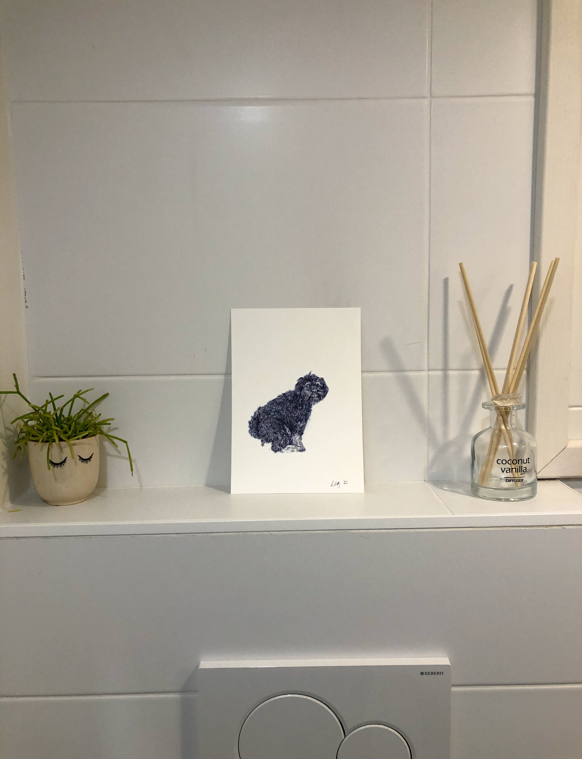 Looking for a unique way to lighten the mood in your bathroom? This unframed A4 Pooping Dog poster is a delightful addition that’s sure to make anyone smile. Part of my Companionshit series, it captures the charming essence of a small dog in a playful, cheeky moment.