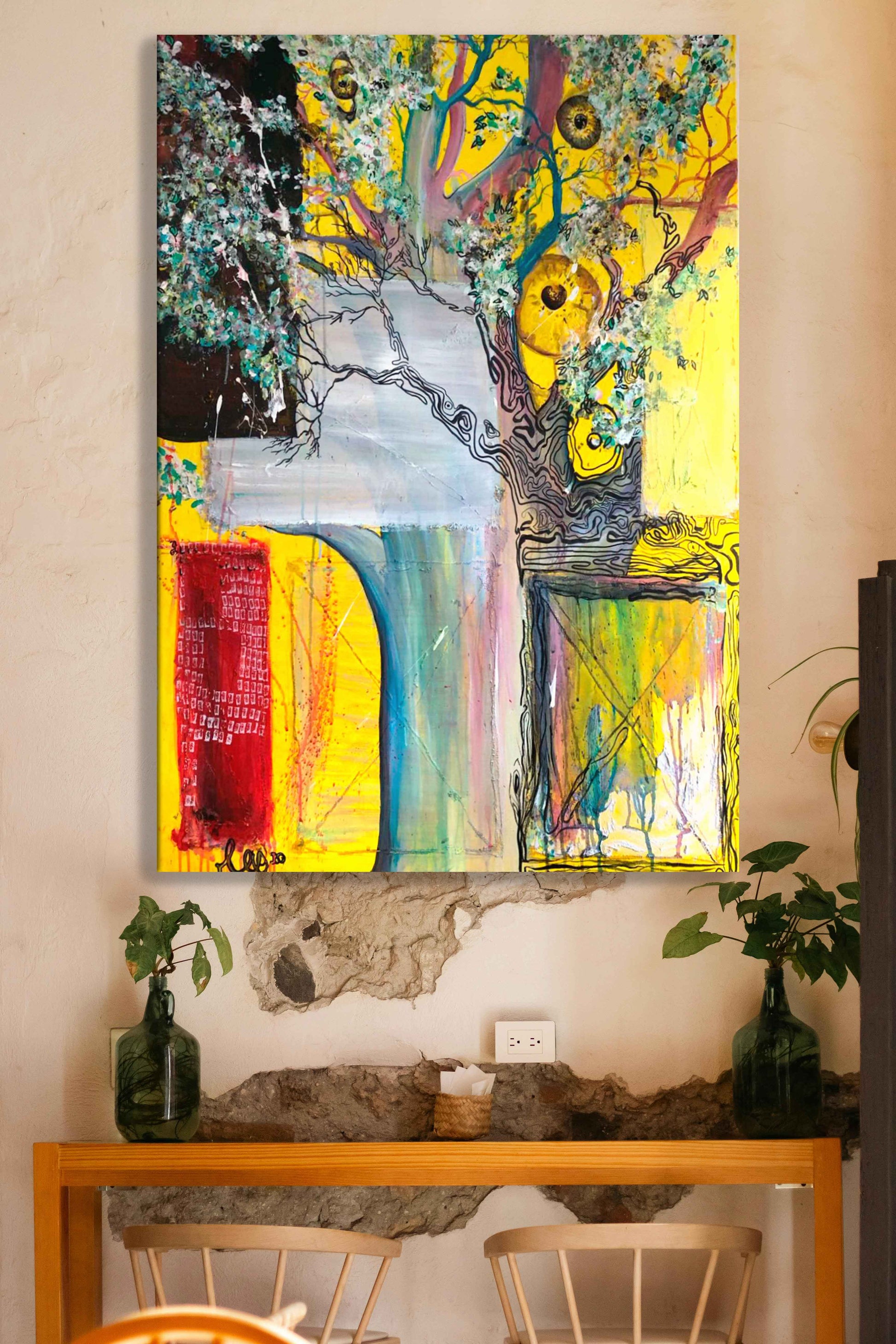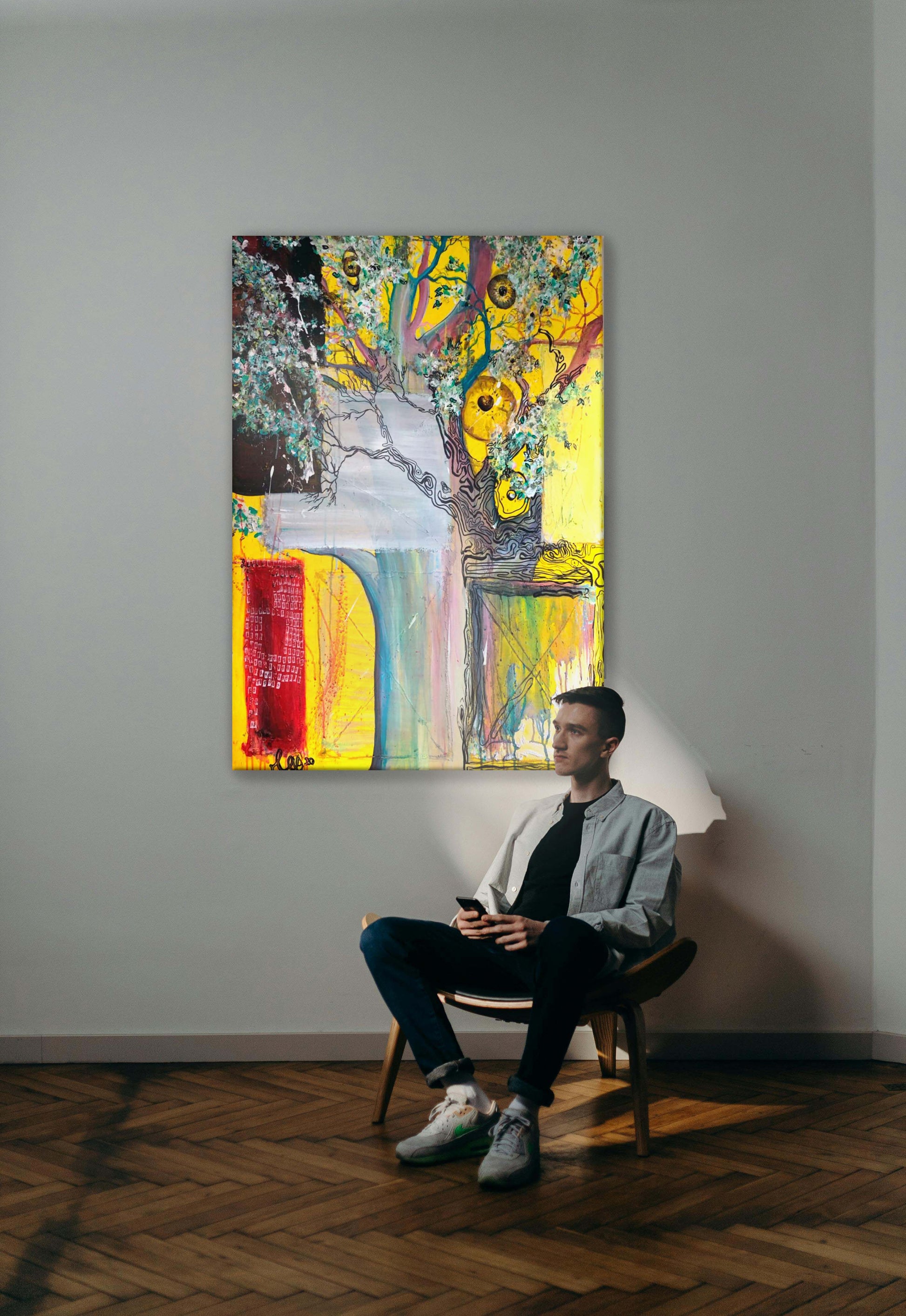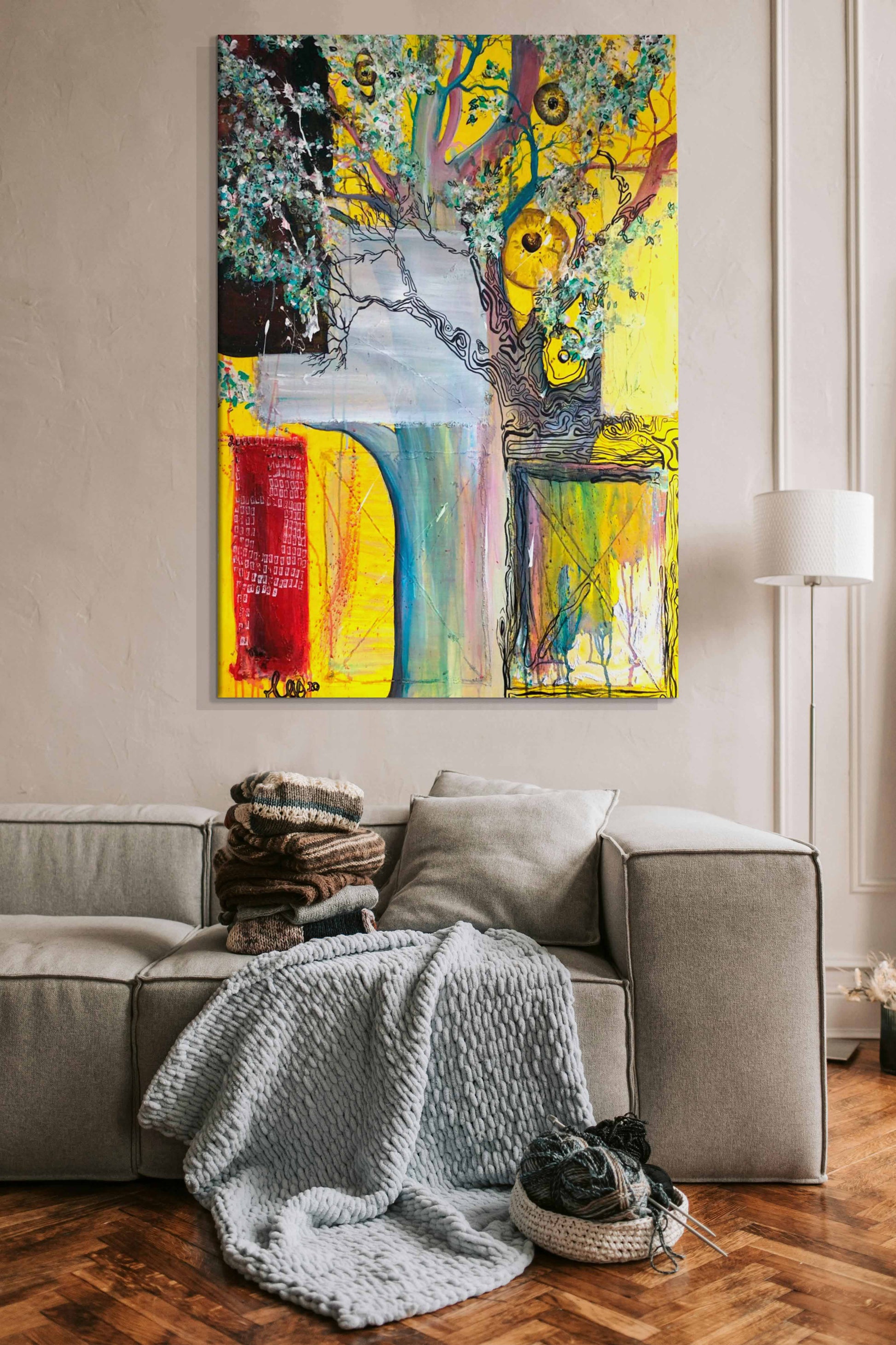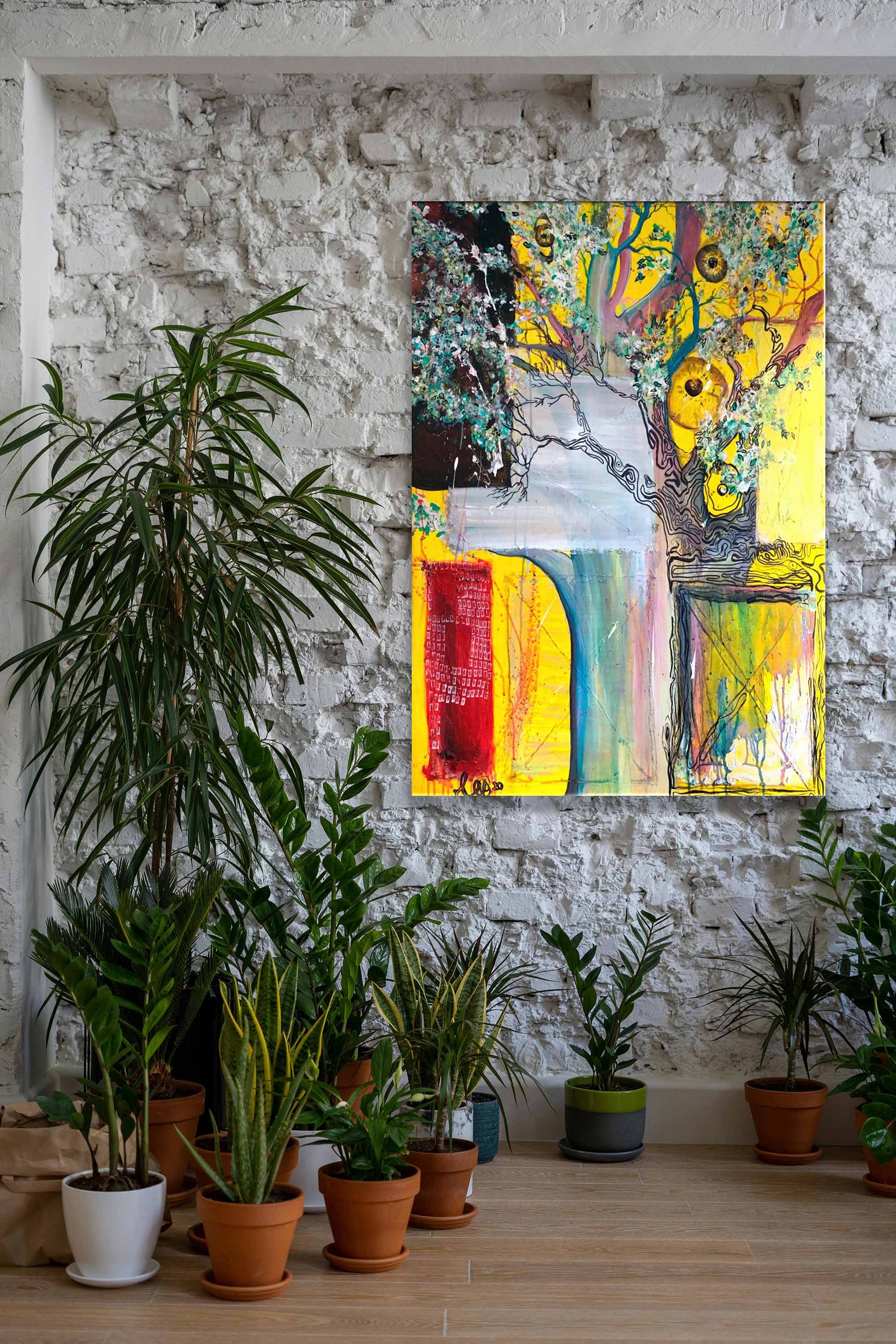 Dreamy Yellow Nature-themed Original Painting | Mixed Media on Canvas