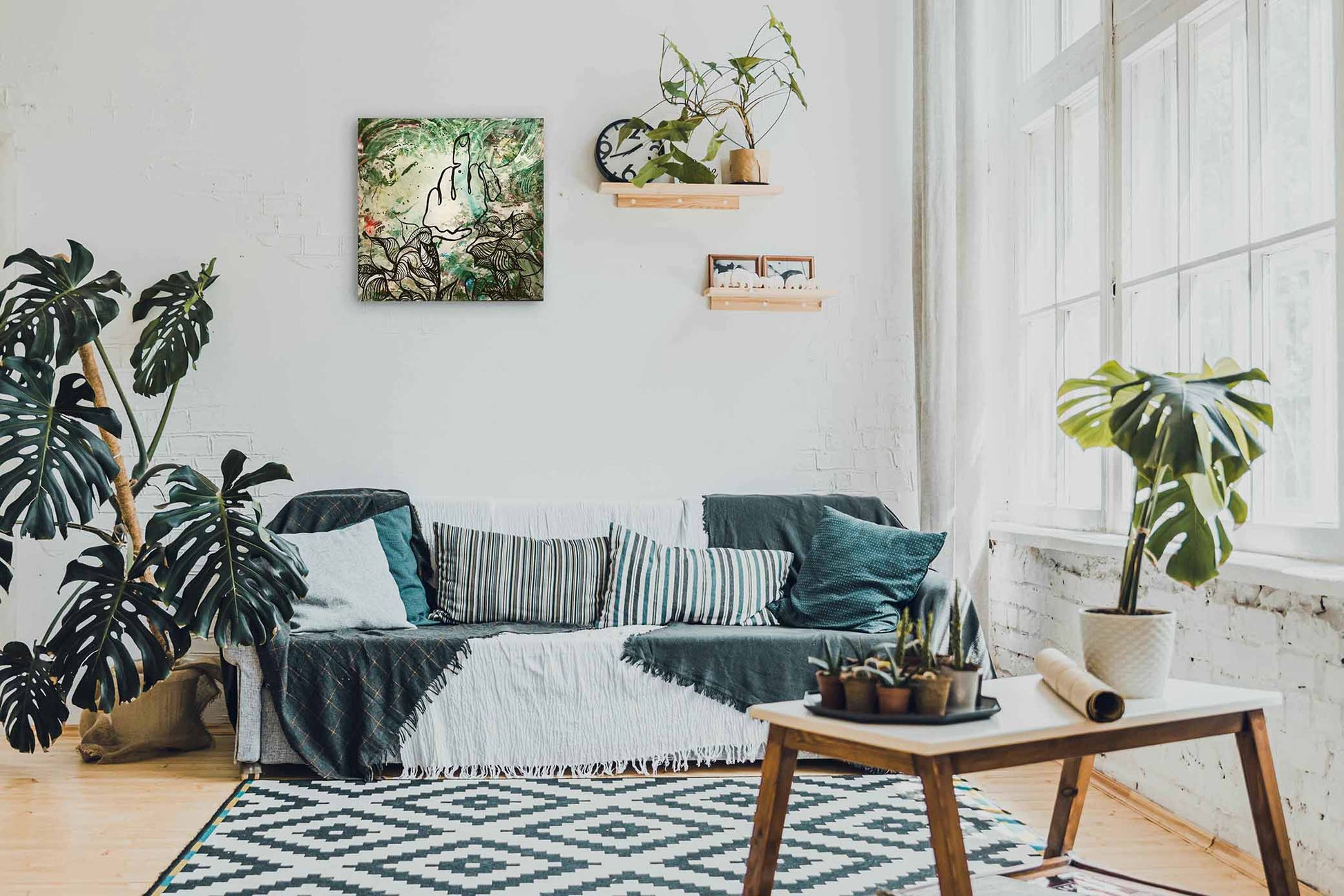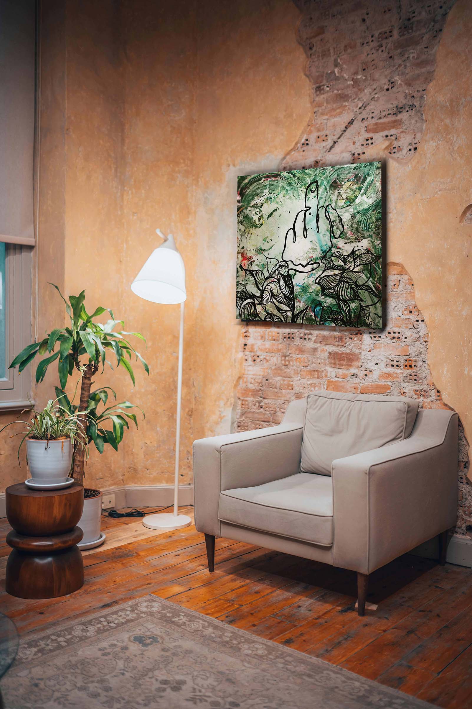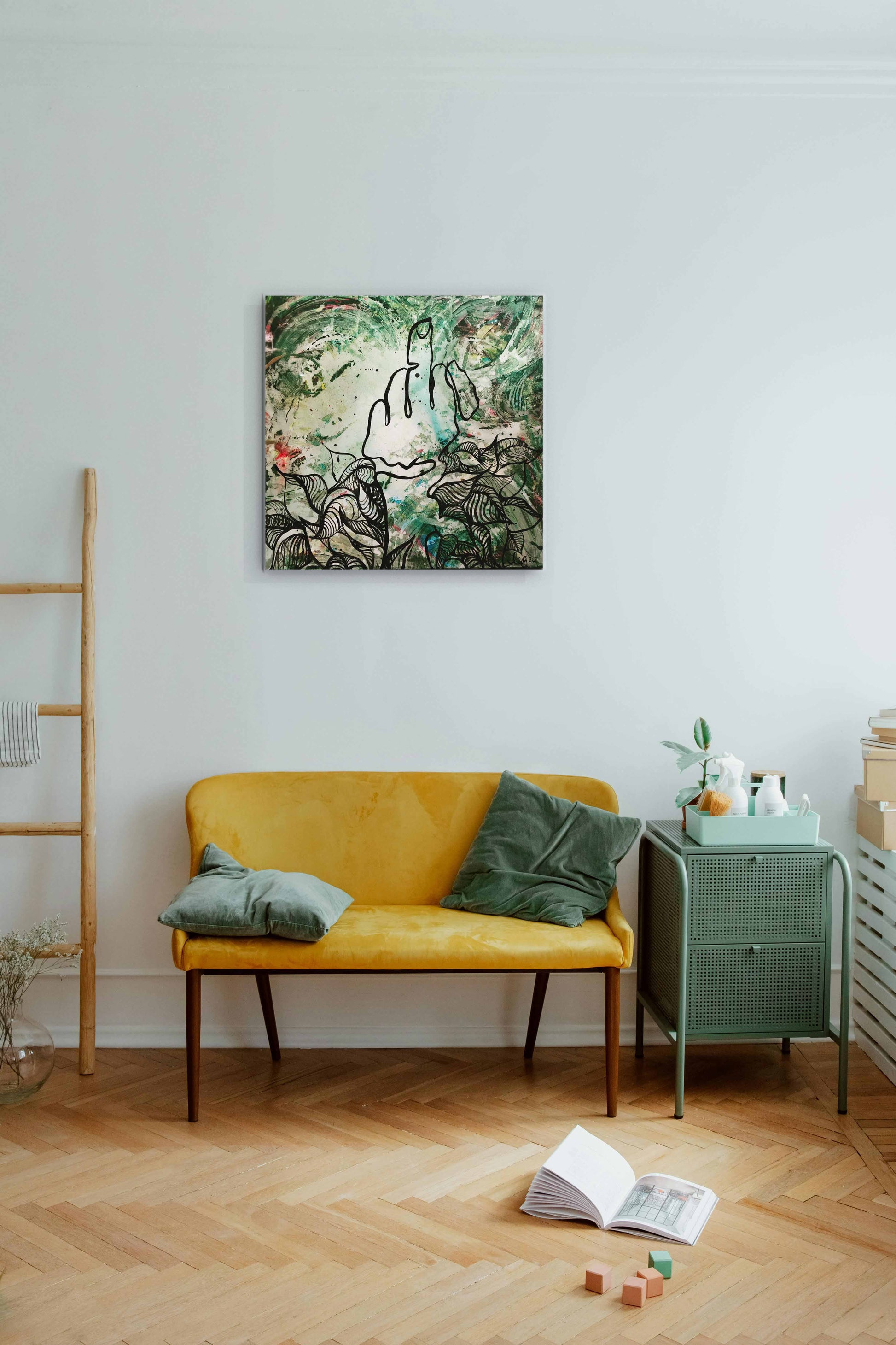 So I painted this when I got fired on the spot for refusing to work double the hours that were in my contract, right when Covid broke out. One of my roommates also bailed on the rent, and I had just graduated college but the world was shutting down. So what did I do? I started a painting without any idea or direction, and this is what came out of it.