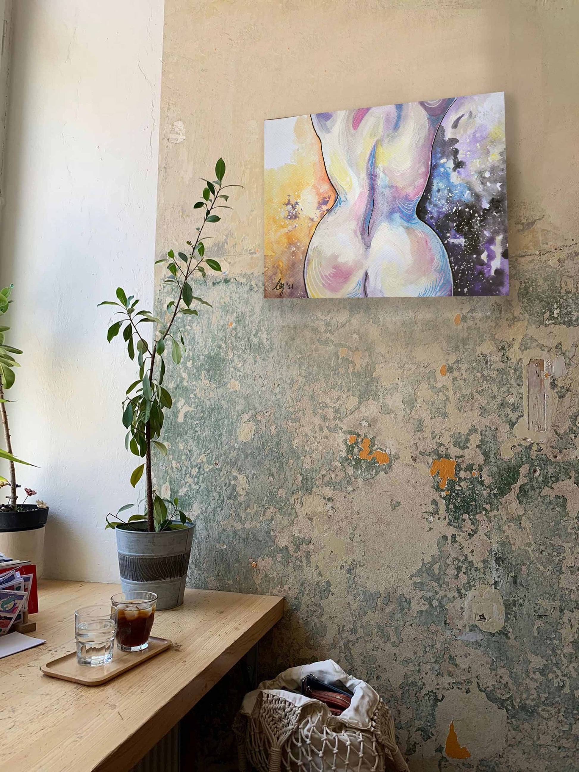 My go to is usually painting women, something I'm comfortable with when experimenting with new mediums. To me, femininity is all about embodying your emotions. Which means to really feel the lessons life has in store for you in order to learn from them, and feel the way the person you want to be would feel first in order to become that.